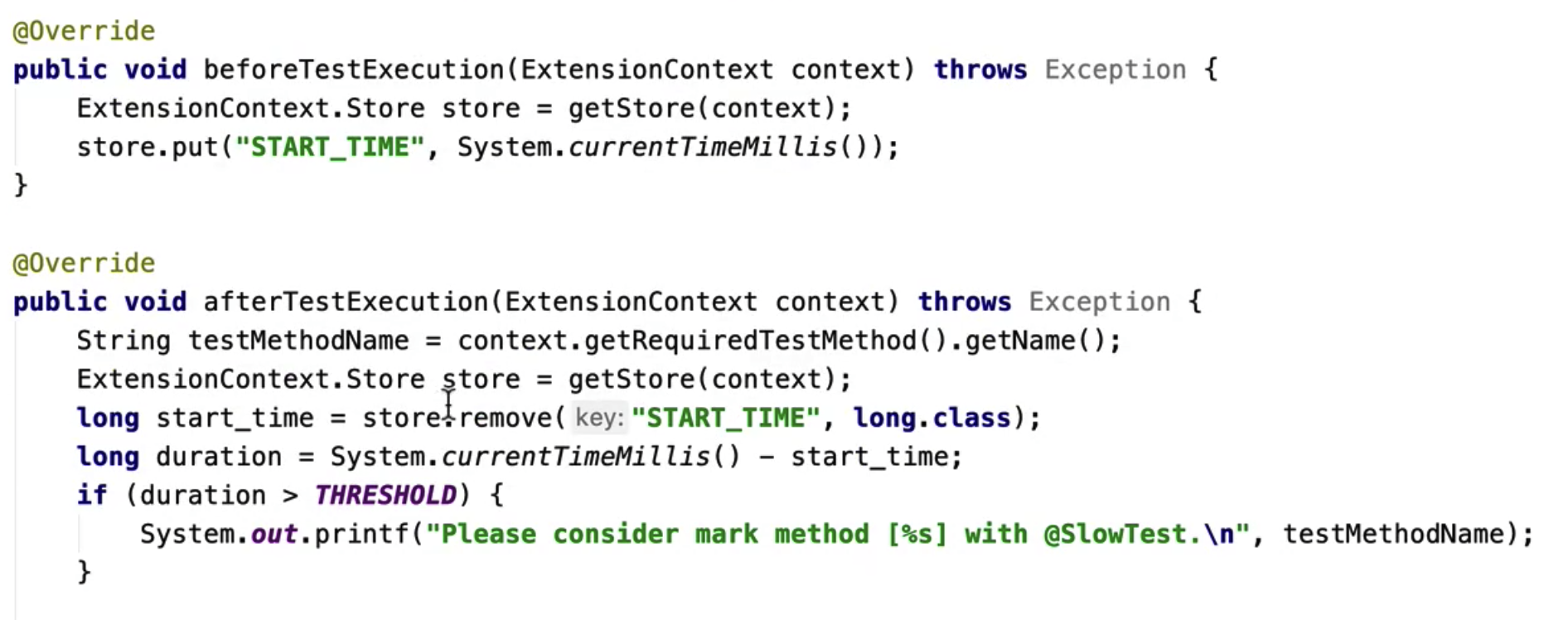 - 기존에 Static으로만 가능했던 @BeforeAll 이나 @AfterAll을 인스턴스 메소드 또는 인터페이스에 정의한 default 메소드로 정의할 수도 있다